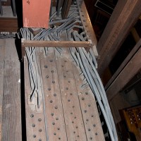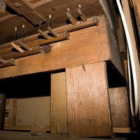 La présence d’une infestation active n’est révélée qu’une fois les larves devenues adultes, lorsqu’elles percent des trous pour sortir du bois. Ces trous d’envol peuvent donc être des éléments révélateurs, en particulier lorsqu’on trouve de la sciure fraîche à proximité. Une infestation xylophage nécessite dans tous les cas une intervention curative afin de tuer les larves. Nous avons opté pour cela pour la technique de la diathermie (Hochfrequenztechnik), réalisée par l’entreprise Agil, qui présente l’avantage de pouvoir traiter rapidement de grands volumes, contrairement à l’anoxie.