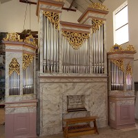 Comme la dorure, ce type d’ornementation se rencontre assez rarement dans les orgues. Néanmoins, nous avons été amené à proposer un décor en faux marbre pour l’orgue neuf de Luz-Saint-Sauveur ainsi qu’à restaurer un décor existant pour l’orgue de Markt-Allhau. Dans ces cas, nous avons pris le parti de sous-traiter ce travail auprès de spécialistes comme l’atelier Meyer.