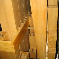 Les tuyaux en bois sont réalisés par Mathieu Lichty, soit en résineux pour les orgues de type germanique, soit en chêne pour les orgues classiques français. Pour les orgues neufs, nous réalisons habituellement les tuyaux de pédale en sapin et les tuyaux de manuel en chêne. Ils sont traditionnellement assemblés par rainure et languette.