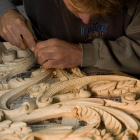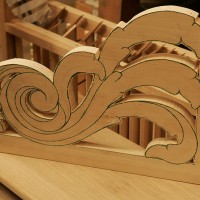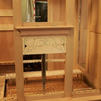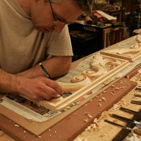Les ornements sculptés des buffets et de la console sont également réalisés par Freddy Risser et, occasionnellement, en sous-traitance chez Philippe Remy, ébéniste installé à La Bresse, tous deux diplômés de l’école d’Avignon. Ils peuvent aussi bien créer des ornements adaptés au style d’ensemble du buffet, dans le cas d’un orgue neuf, que resculpter des parties lacunaires d’un buffet à restaurer. La scie à ruban n’est utilisée que dans la phase de dégrossissage des volumes : tout le reste du travail est réalisé à la main, au moyen de diverses gouges et d’une massette. Un sens accru des proportions et des volumes, ainsi qu’une bonne connaissance de la structure du bois est indispensable.